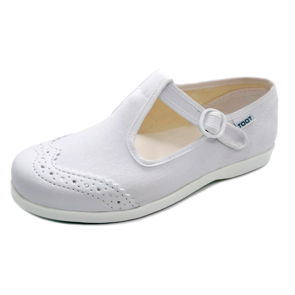 Guillermina clásica en gabardina con hebilla y puntera picada en ecocuero .Suela flexible, liviana y antideslizante Primeros caminantes Ideal para Cortejos y Bautismo