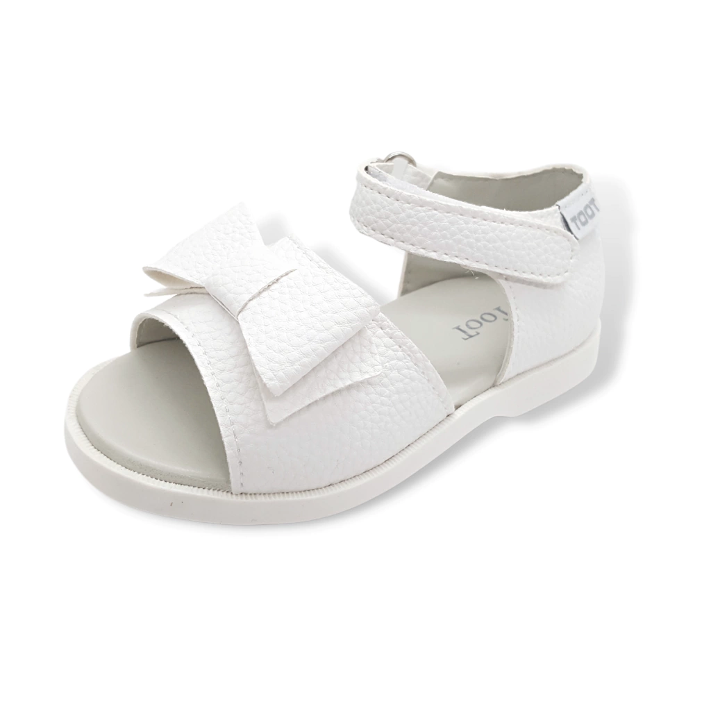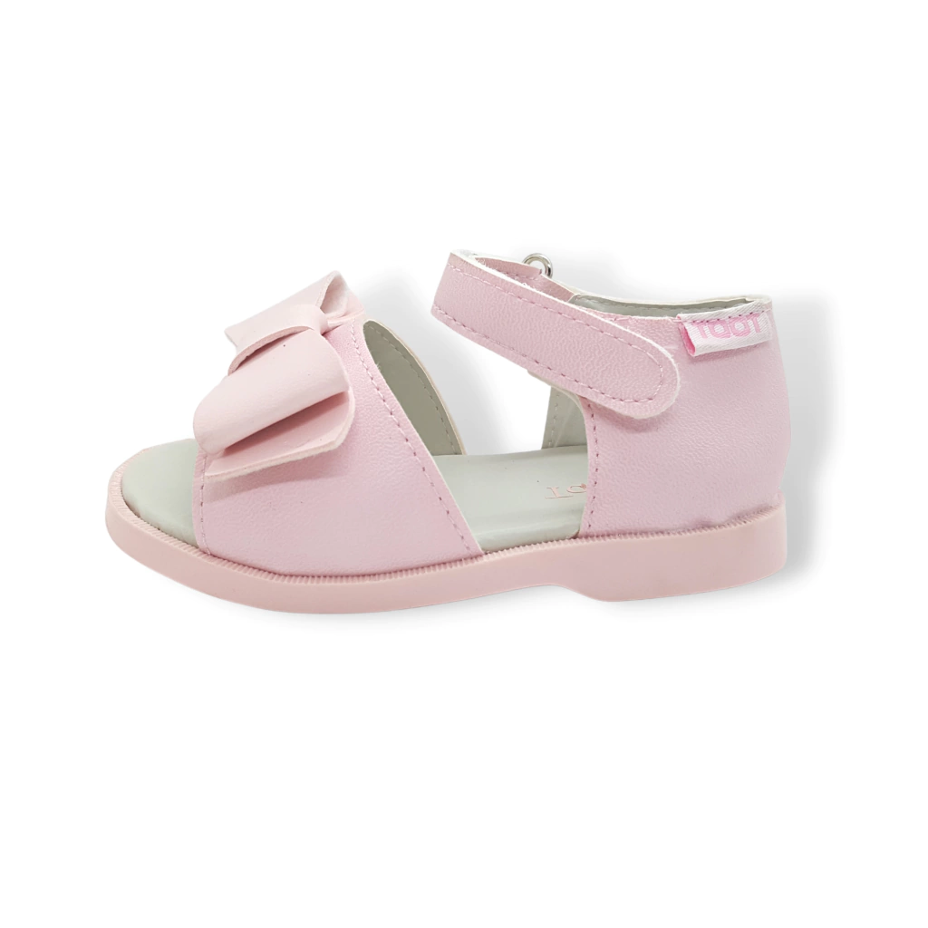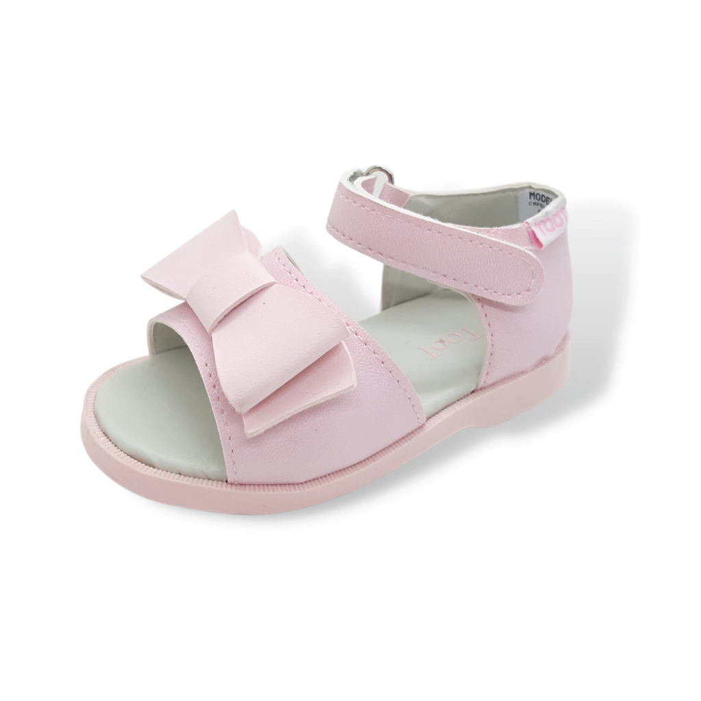 Sandalia con abrojo y moño aplicado y talón cerrado en eco cuero Suela flexible y liviana