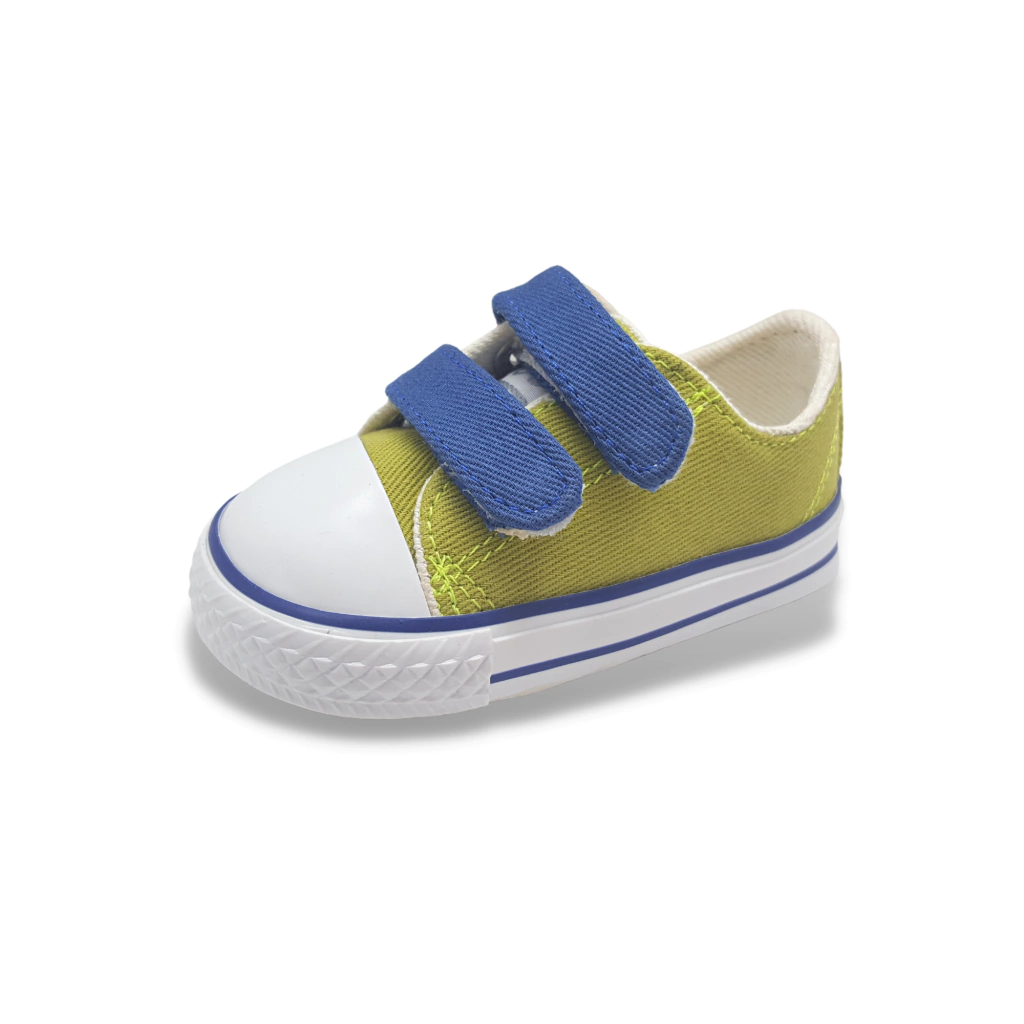 Zapatilla de gabardina con dos abrojos en colores contrastantes. Suela antideslizante.